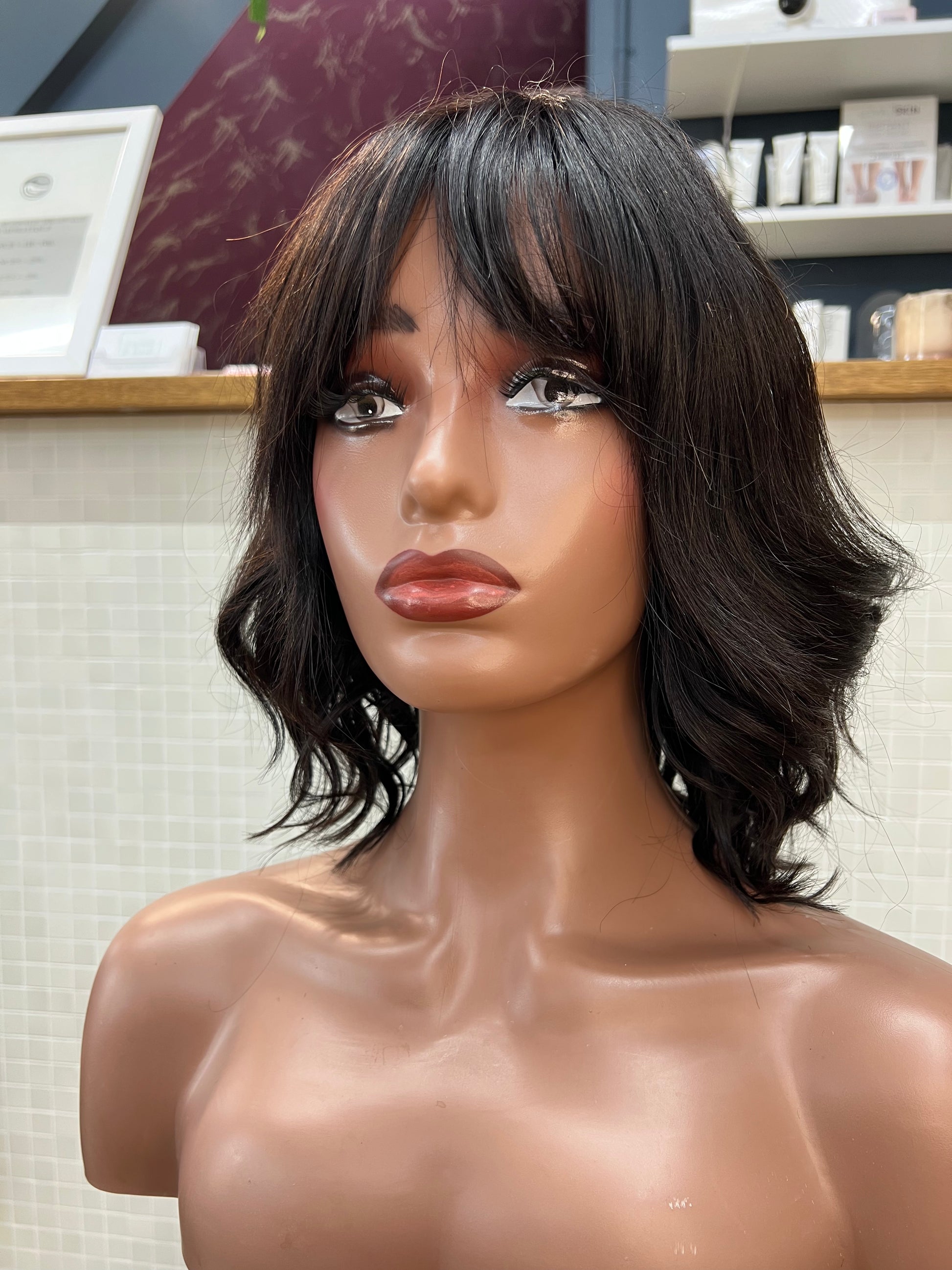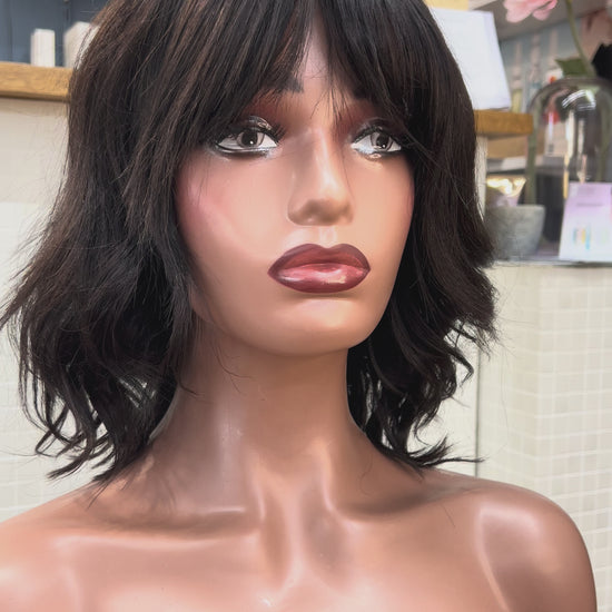 Adoptez un style chic et naturel avec cette perruque courte ondulée. Sa texture légère et ses ondulations délicates apportent du volume et du mouvement, sublimant votre look en toute simplicité. Facile à entretenir, elle vous garantit une allure élégante et moderne au quotidien. Transformez votre coiffure en un instant avec cette perruque incontournable.
